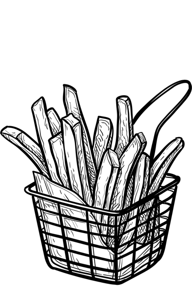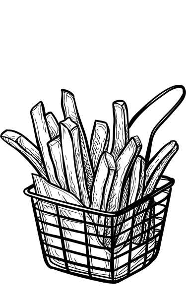 350 gramos de papas a la francesa, acomprañadas de tocino asado con cebolla a la plancha y aderezadas con queso de nachos, catsup y salsa valentina o bien cambia los aderezos tradicionales y elige uno de nuestros aderezos (mango habanero, ranch, bbq o bufalo).